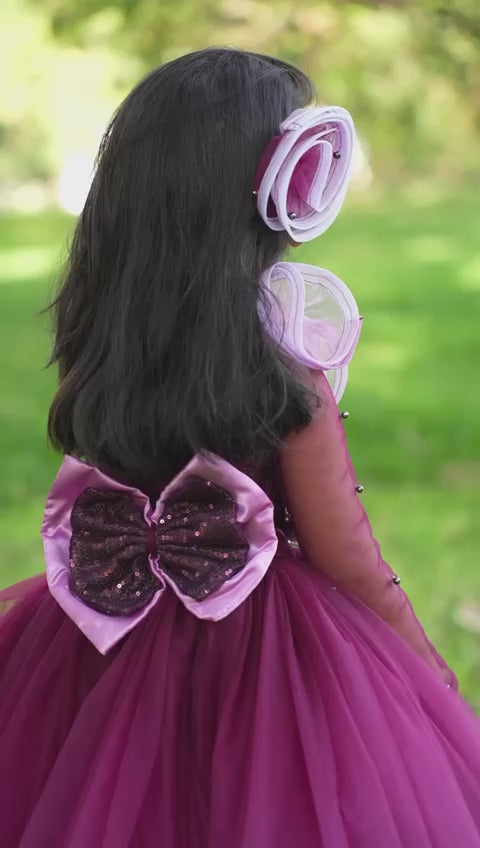 WINE OMBRE BALL GOWN WITH ONESIDE RUFFLE